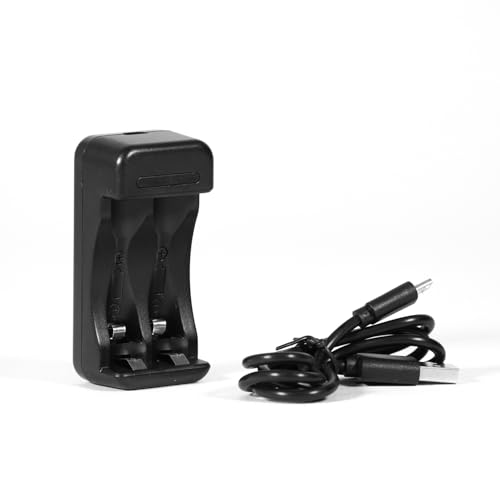 Svart AA/AAA-batteriladdare med USB-port 2 oberoende fack, säker och bärbar laddning