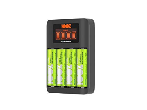100% PeakPower Laddare för 4 batterier med 4-pack AA 2300mAh NiMH-batterier | 100% PeakPower | Lätt USB-driven AA och AAA batteriladdare - Smarta säkerhets