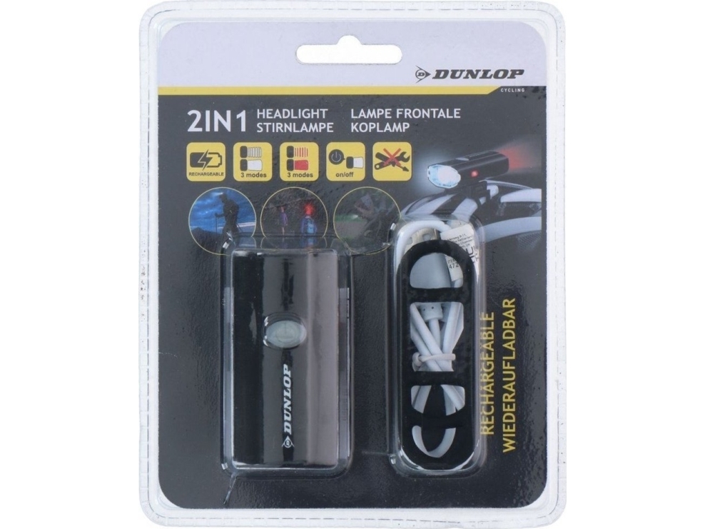 Dunlop Bike Light 2In1 Usb-Laddning, Monteringsfäste För Hjälm