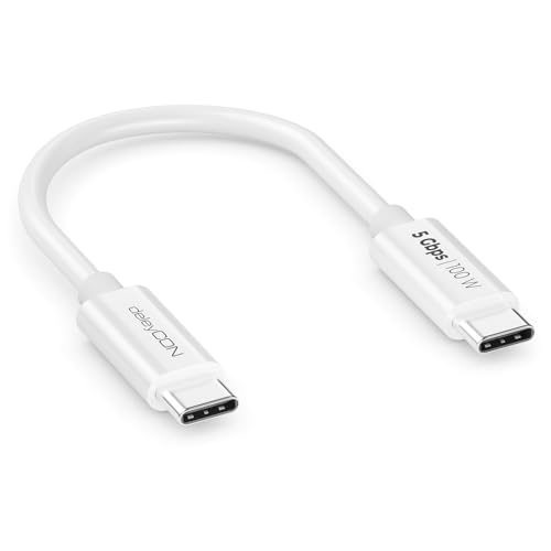 deleyCON 0,15m USB C-Kabel (100 W Snabbladdning + Datakabel 5 Gbit/s) Kort USB-C-Laddningskabel för iPhone 16 15 Pro Max Samsung Galaxy S25 S24 S23 Pixel iPad Pro MacBook Air Tablet Switch PS5 - Vit