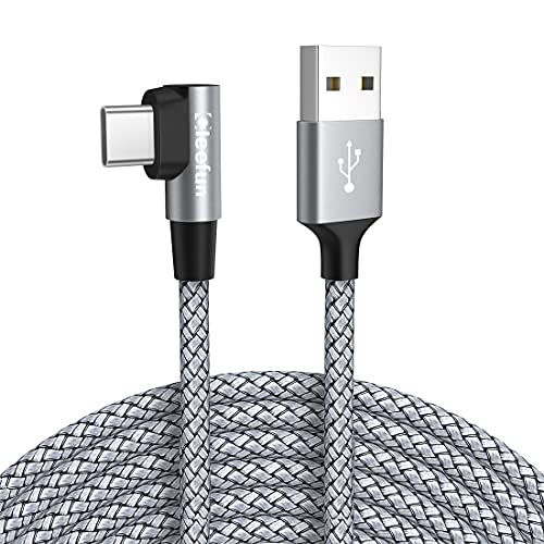 CLEEFUN USB C-kabel 90 Graders 3 M, Lång Högervinklad USB A till typ C Snabbladdningskabel Nylon Flätad för Galaxy S25 S24 S23fe S22 S21 Ultra A55 A35 A15 A40 A25, Redmi Note 13 12 Pro, Pixel 8, PS5