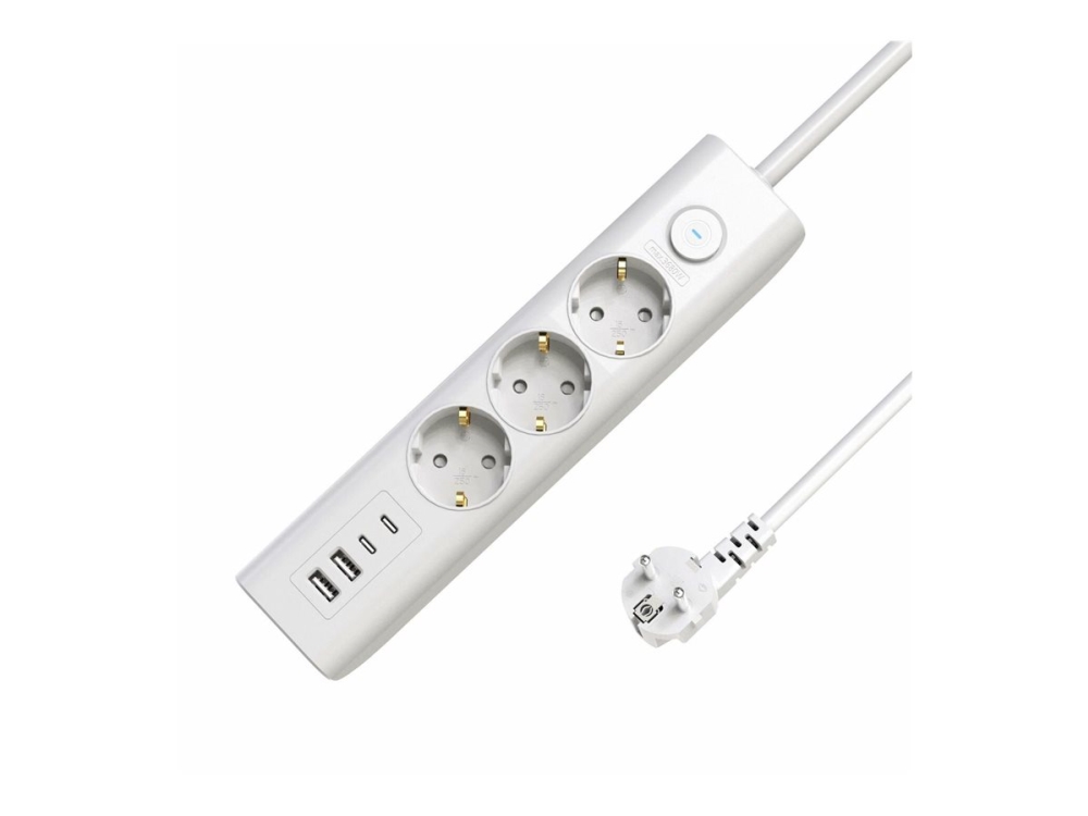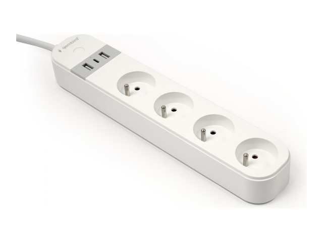 Gembird Tsl-Ps-F4u-01-W - Smart Kraftlist - Ac 230 V - 3680 Watt - Wi-Fi - Ingång: Typ E - Utgångskontakter: 4 (Typ E, 2 X Usb, 24 Pin Usb-C) - 1.5 M Sladd - Frankrike - Vit
