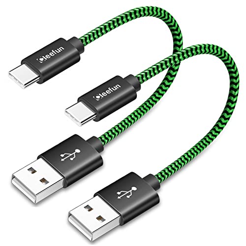 CLEEFUN [2-Pack, 0,3m] Kort USB Typ C kabel 3A Snabbladdning, USB A till USB C Laddare Nylonflätad Sladd för Galaxy S20 S10 S9 S8 Plus S10e S21 S22, A40 A50 A51 A20e M30s, Redmi Note 8