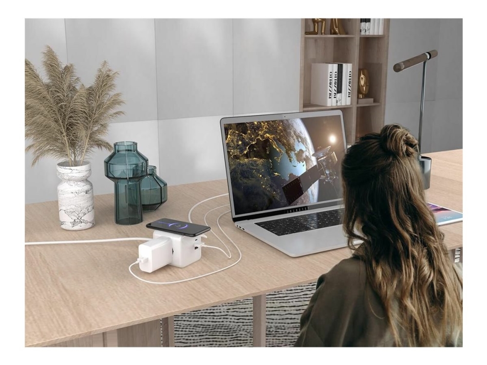 Gembird Tsl-Ps-S4u-01-W - Smart Kraftlist - Ac 230 V - 3680 Watt - Wi-Fi - Ingång: Typ F - Utgångskontakter: 4 (Typ F, 2 X Usb, 24 Pin Usb-C) - 1.5 M Sladd - Vit