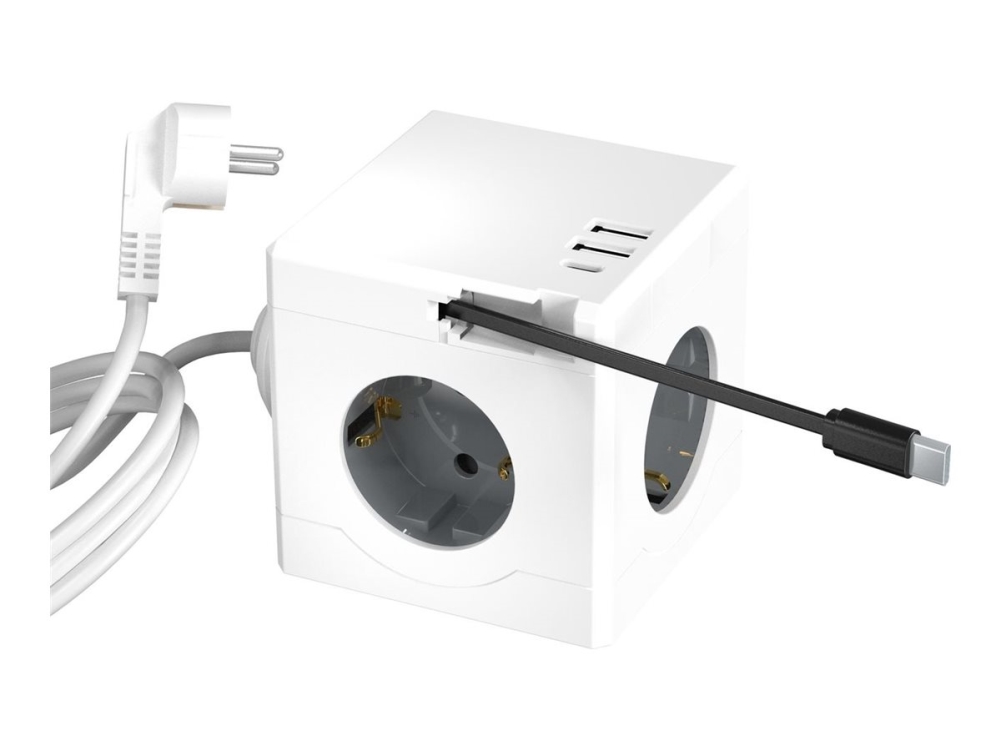 Microconnect - Kraftdistributionsenhet - Ingång: Typ F - Utgångskontakter: 6 (3 X Strömtyp F, 2 X Usb, 24 Pin Usb-C) - 1.5 M Sladd - Vit