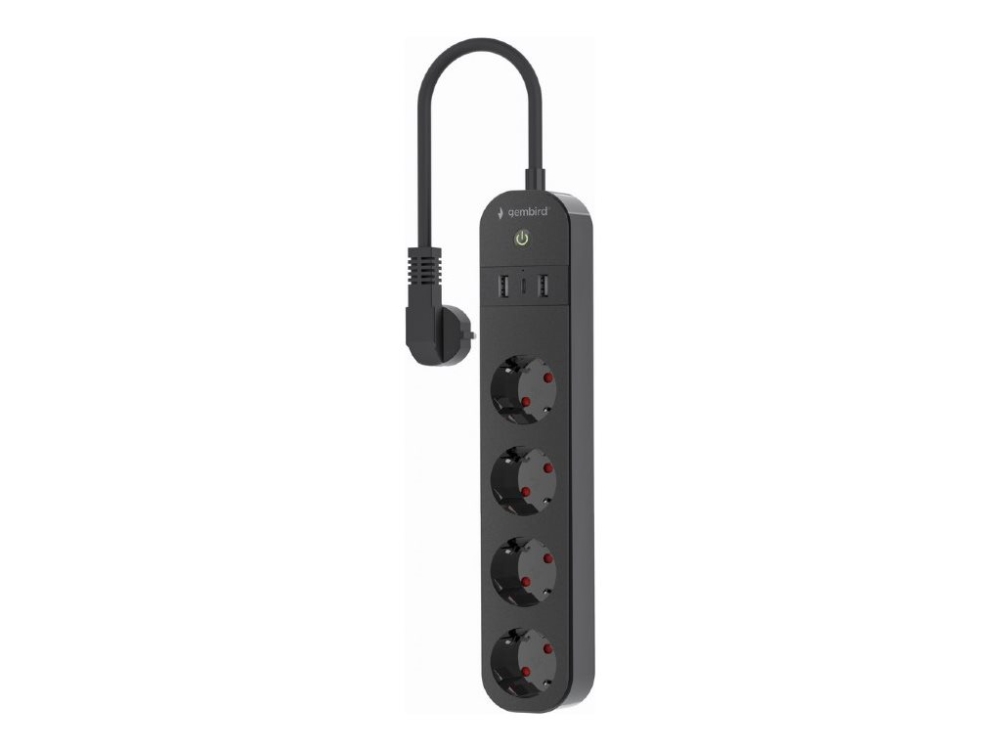 Gembird Tsl-Ps-S4u-01 - Smart Kraftlist - Ac 230 V - 3680 Watt - Wi-Fi - Ingång: Typ F - Utgångskontakter: 4 (Typ F, 2 X Usb, 24 Pin Usb-C) - 1.5 M Sladd - Svart