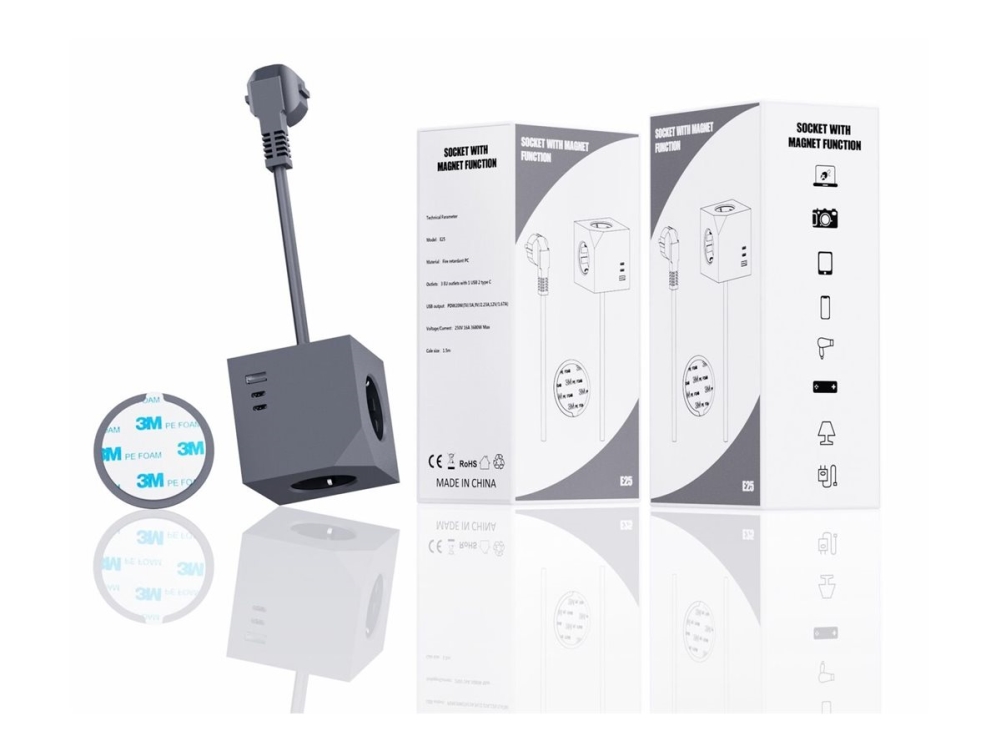 Microconnect - Effektband - 3-Vägs, Med Magnetisk Funktion - Ingång: Typ F - Utgångskontakter: 6 (3 X Strömtyp F, Usb, 2 X Usb-C) - 1.5 M Sladd - Mörkgrå