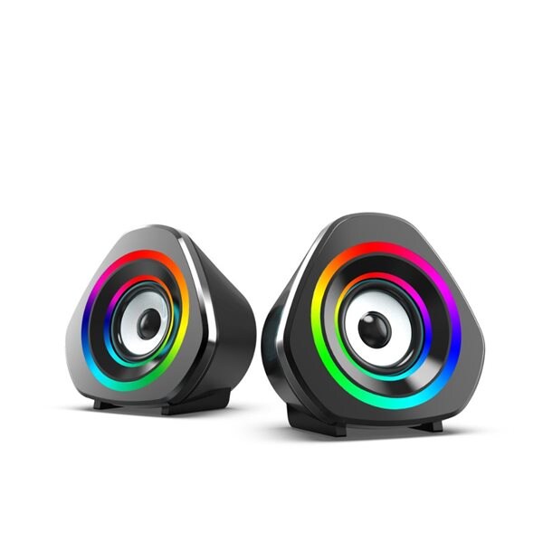 NJSJ PC Pögtalare, Mini Datorhögtalare för PC med färgglad LED belysning, stereo 2.0 USB-driven 3,5 mm Aux bärbar Multimediahögtalare för datorskärm, Surfplattor,Musikspelare, 6W (svart)