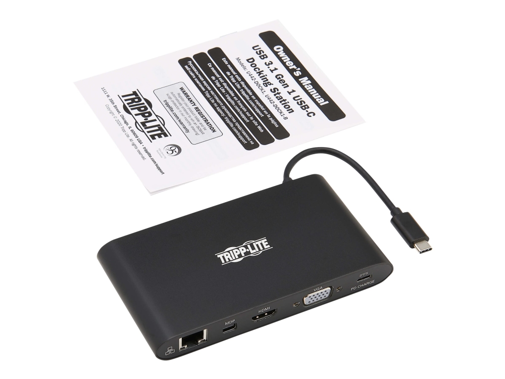 Eaton Tripp Lite Series Usb 3.1 Gen 1 Usb C Docking Station W/ Usb-A, Hdmi, Vga, Mdp, Gigabit Ethernet, Mem Card, 3.5 Mm & Usb-C Charge 4K @ 30Hz, Usb-C, Usb Type C, Usb Type-C - Dockningsstation - Usb-C - Vga, Hdmi, Mini Dp - 1Gbe
