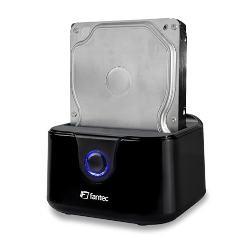 FANTEC USB3.2 Gen1 docking station för 1x SATA 3,5/2,5" SSD/hårddisk, överför frekvenser upp till 5 Gbit/s (Supersped), högblank plast, svart