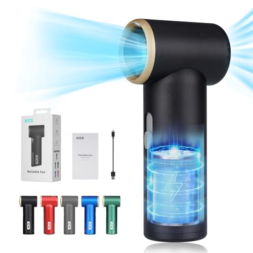 Kica JetFan Mini – bärbar handfläkt, USB-fläkt, 14 timmars driftstid, steglös hastighetskontroll, metallmaterial, för resor, kontor, hem, sommarpresenter – svart