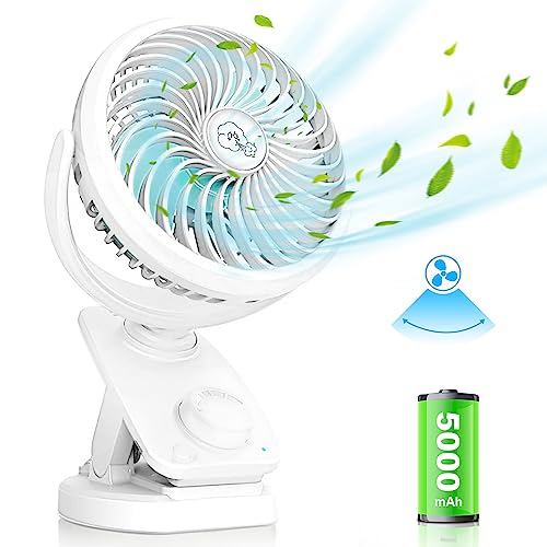Enhanced USB Fan, 5000 Mah 2 in 1 Clipboard Fan with 1.8m Cable, 360° Rotation Rechargeable Fan with Stepless Speed, Oscillating Car for Strollers Office Travel (Vit)