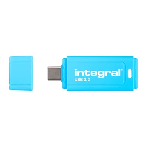 Integral Neon-C 128 GB USB 3.2 Gen 1 Flash Drive — Höghastighetstyp C/USB 3.1/3.0, NEON blå, läs 150 MB/s, skriv 30 MB/s, Plug-and-play, bärbar lagring för PC, Mac, bärbar dator