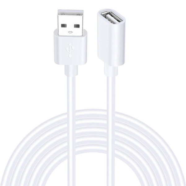 deleyCON 2m USB 2.0 Hög Hastighet Kabel Förlängningskabel USB A-Kontakt till USB A-Uttag - Vit