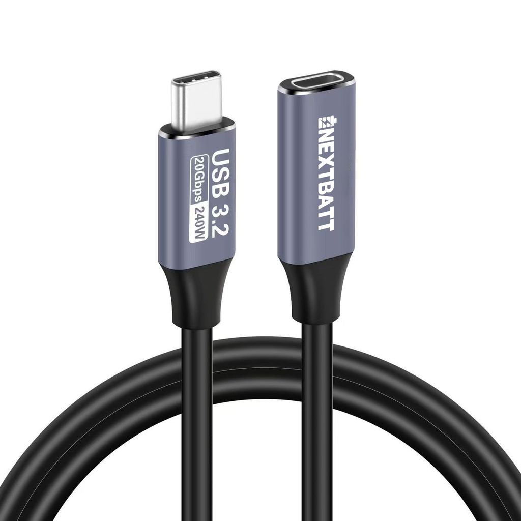 Nextbatt USB-C förlängningskabel hane till hona 2m – svart