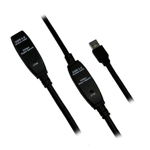 MutecPower 15 m aktiv USB 3.0 hane till hona förlängningskabel, med 2 signalförstärkare och USB-strömförsörjning, svart, 15 m, kompatibel med bärbara datorer, hårddiskar,