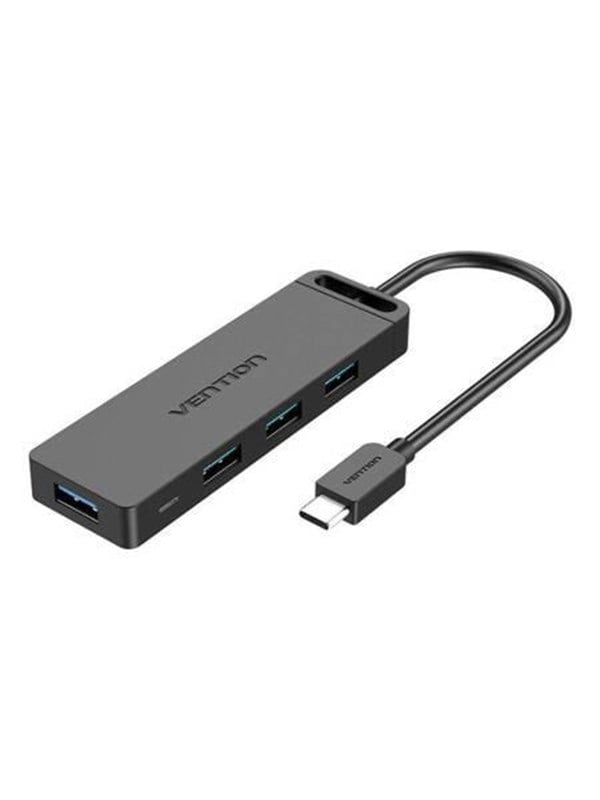Vention Hub 5in1 with 4 Ports USB 3.0 and USB-C cable 0.15m Black USB Hub - USB 3.0 - 4 porte - Svart