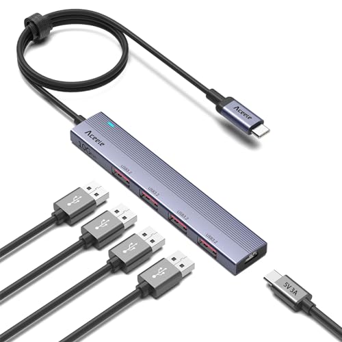Aceele USB C 3.2 Gen 2 HUB med 4 USB-A och USB Type-C-portar laddning, USB 3.2 100 cm kabeldatavnav för bärbara datorer, stationära datorer, Xbox och Mac och mer
