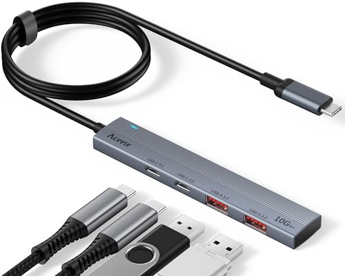 Aceele USB 3.2 Gen 2-hub med 4 anslutningar (2 x USB-A, 2 x USB-C), 100 cm kabel, för bärbara datorer, stationära datorer, Xbox och Mac