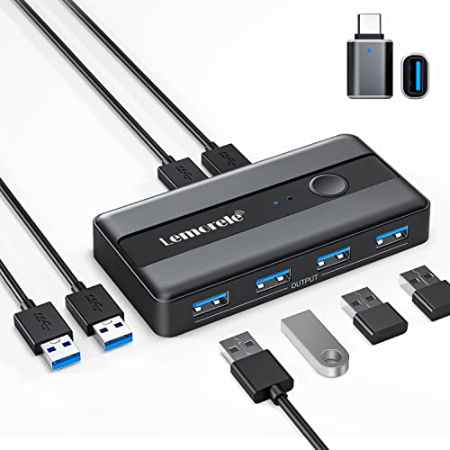 Lemorele USB 3.0-Switch - 4 Portar för 2 Datorer, 2-i-4-Out KVM-Hub Med 2 Kablar för Mus, Tangentbord, Skanner, Skrivare - Kompatibel Med Windows/Mac/Linux