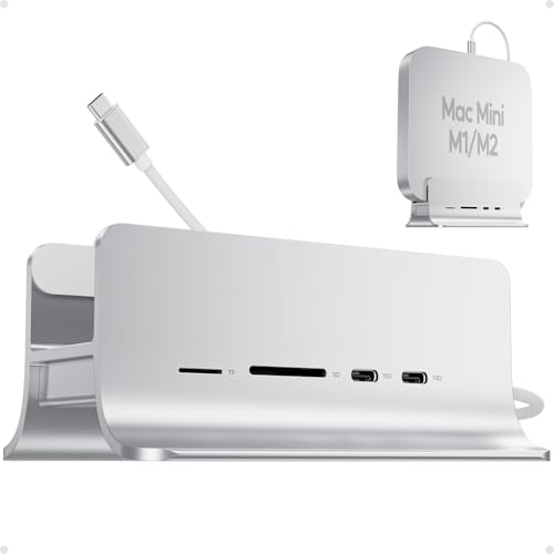 Minisopuru USB C-hubb för Mac Mini, Mac Mini Dock & Stand Stöd M.2 NVMe/SATA SSD, Mac Mini Hub med 2 USB C 10 Gbps Data, TF& SD, M.2 SSD (ingår inte) för 2018 och senare M1/M2 Mac Mini, etc