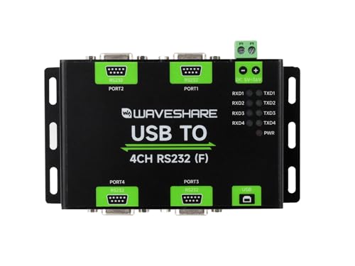 Waveshare Industrial Isolated USB to 4CH RS232 Converter (DB9 Female Interface), Adopts Original FT4232HL Chip, Features High-speed&Stable Communication, compatible with Mac/Linux/Android/Windows...