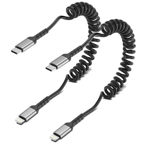 ADILIFT USB C till Lightning-kabel spiralkabel [2 stycken), MFi certifierad Carplay iPhone laddningskabel, USB C Lightning-kabel, kort för iPhone 14 13 12 11 Pro Max Plus X XS 8 7 6 Plus