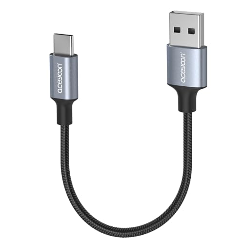 aceyoon USB C-kabel kort 10 cm, 3 A laddningskabel USB C snabbladdningskabel nylon flätad USB till typ C-kabel för iPhone 16 15, för Galaxy S24+/S24/S23, för Google, för Huawei, för Xiaomi