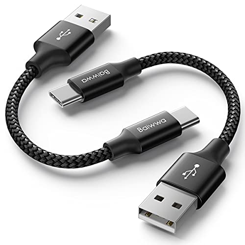 Baiwwa USB C-kabel Kort 30CM, Nylon 2Pack USB-A till USB-C Laddningskabel för Samsung Galaxy S24 S23 S22 S21 S20 S10 S9 S8 Plus, Redmi, Pixel, Xperia -Svart