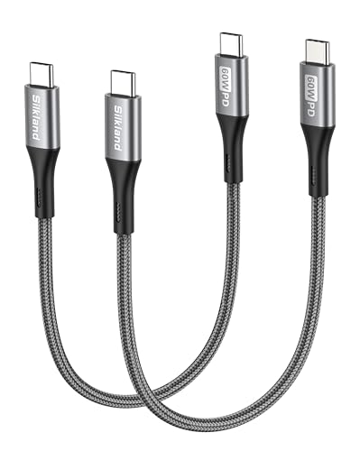 Silkland USB C to USB C Kabel Kort 25CM 2Pack, 60W 20V/3A, PD3.0 & QC4.0+, USB-Typ C Snabbladdningskabel Nylonflätad för Samsung S25 Ultra/S24/S23/S22/S21, iPad Pro/Air/Mini, MacBook Air/Pro, Pixel
