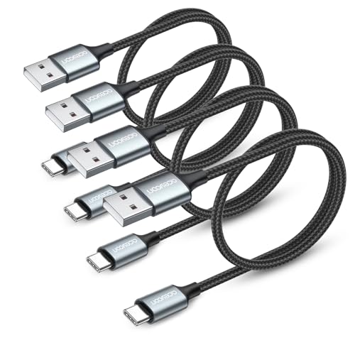 aceyoon USB C-kabel, kort, 50 cm, 4 stycken typ C, laddningskabel, 3 A, max USB 2.0 till typ C, nylonkabel, kompatibel med Huawei P40 P30 P20, för Samsung A51 A20 S20, osv, återanvändbar (50CM)