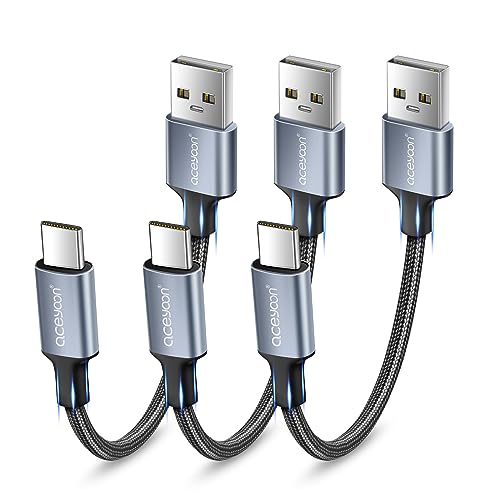 aceyoon USB-kabel typ -C kort [3 stycken 10cm] 3A USB-kabel C snabbladdning nylon flätad USB-kabel C-typ kompatibel med Samsung Galaxy S22 S21 S20 S10 S9A51 A70