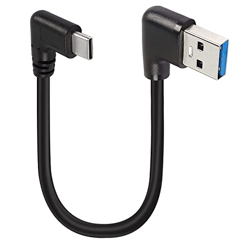 GELRHONR 25 cm USB-typ C-kabel kort, högervinklad USB 3,0 till USB C-kabel, 90 graders typ C laddningskabel 18 W snabbladdning 5 Gbps dataöverföring – svart