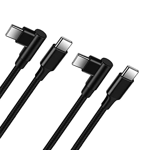 [2-Pack/0,5M] USB C till USB C Kabel Kort, flätad 60W 20V/3A USB typ C till typ C PD snabbladdande ledning 90 Grader för Galxy S23 S22 S21 S20 FE Plus Ultra Note 20 10 A90 A80 A70 (Svart)
