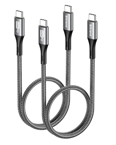 Silkland USB C to USB C Kabel Kort 50CM 2Pack, 60W 20V/3A, PD3.0 & QC4.0+, USB-Typ C Snabbladdningskabel Nylonflätad för Samsung S25 Ultra/S24/S23/S22/S21, iPad Pro/Air/Mini, MacBook Air/Pro, Pixel