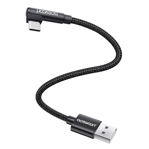 aceyoon USB C-kabel kort 30 cm, 3 A USB C-kabel 90 graders vinkel USB A till USB C snabbladdningskabel nylon flätad för Galaxy S24 Ultra/S24+/S24/S23/S22/S21, för Xperia XA1/XA2, för Huawei P60/P50
