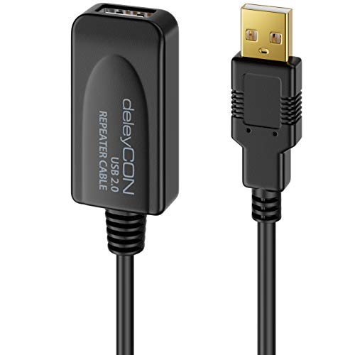 deleyCON 5m Aktiv USB 2.0-Kabel Aktiv Förlängning med Signalförstärkare USB2.0 Repeaterkabel Förlängningskabel PC Dator Skrivare Skanner