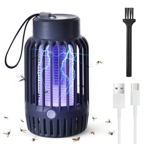 URAQT Mosquito Killer Lamp, 2 i 1 Killer med ultraviolett lampa och belysningslampa, USB Uppladdningsbar Bug Zapper 360° Attrahera Zap Flygande Insekt För Hem Sovrum Utomhus Bakgård (grå)