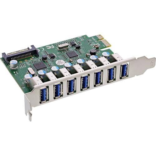 InLine PCIe USB 3.2-kort, 7 x USB-A Gen.1 portar, 5 Gb/s, SATA strömkontakt, VL805, för Windows & Linux, 7661L