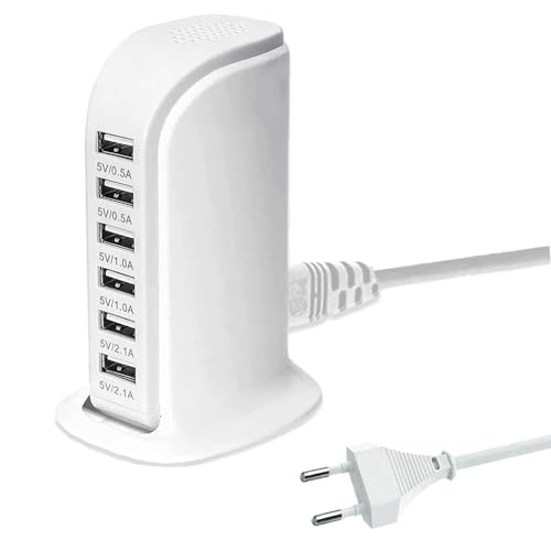 30W Multi-USB Laddningsstation - 6 Portar Stationär Laddare, Vägguttag Hub för Telefoner, Surfplattor (Vit)
