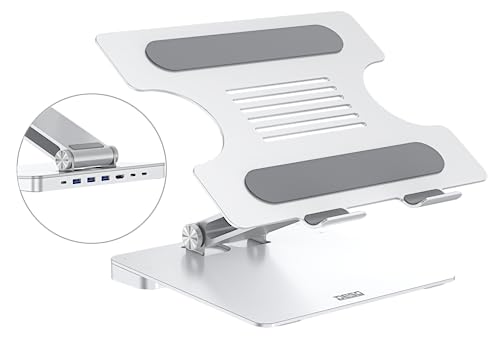 DESQ Bärbar dator – dockstativ, USB-C hub, PD-laddare, fullt justerbar, platt hopfällbar, USB-C-PD, HDMI, USB 3.0, kompatibel med alla USB-C laptops/bärbara datorer 10–15,6 tum