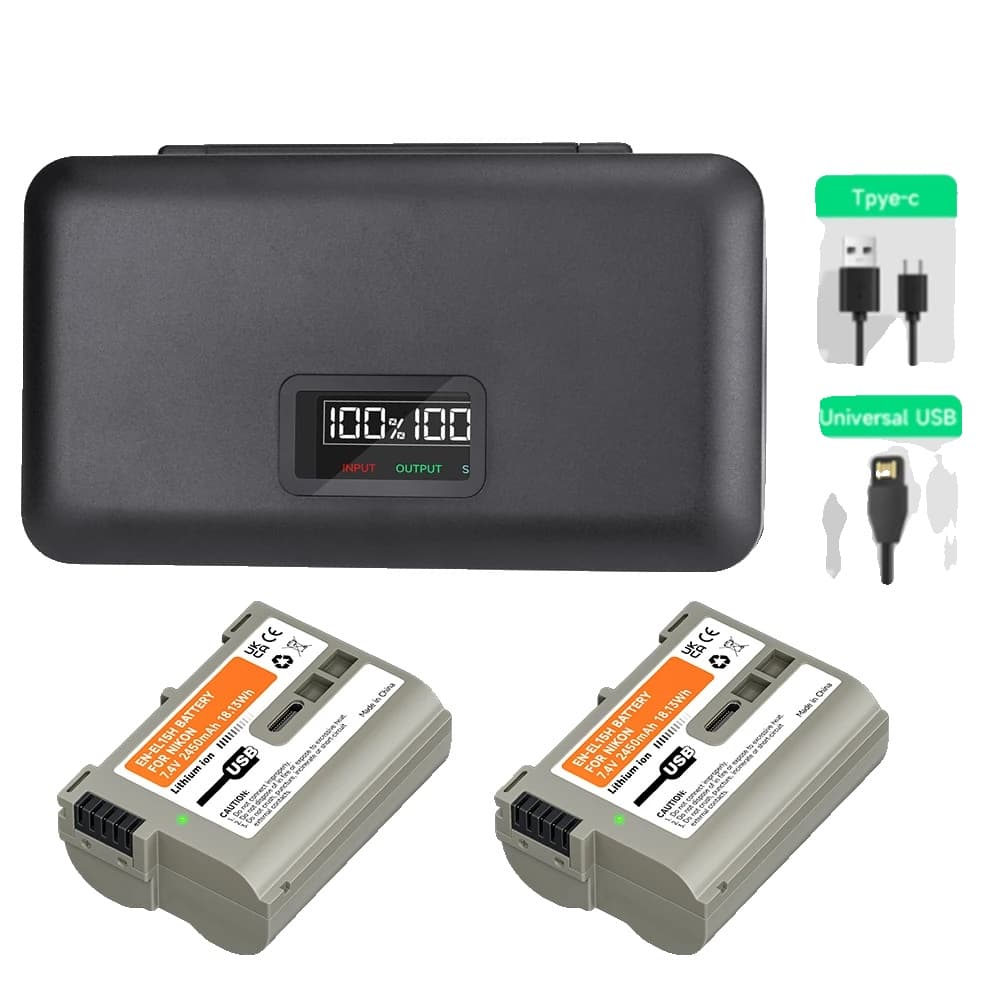EN-EL15 USB-batteriladdare, uppladdningsbar, kompatibel med Nikon-kameror,2Batteri 1Laddare