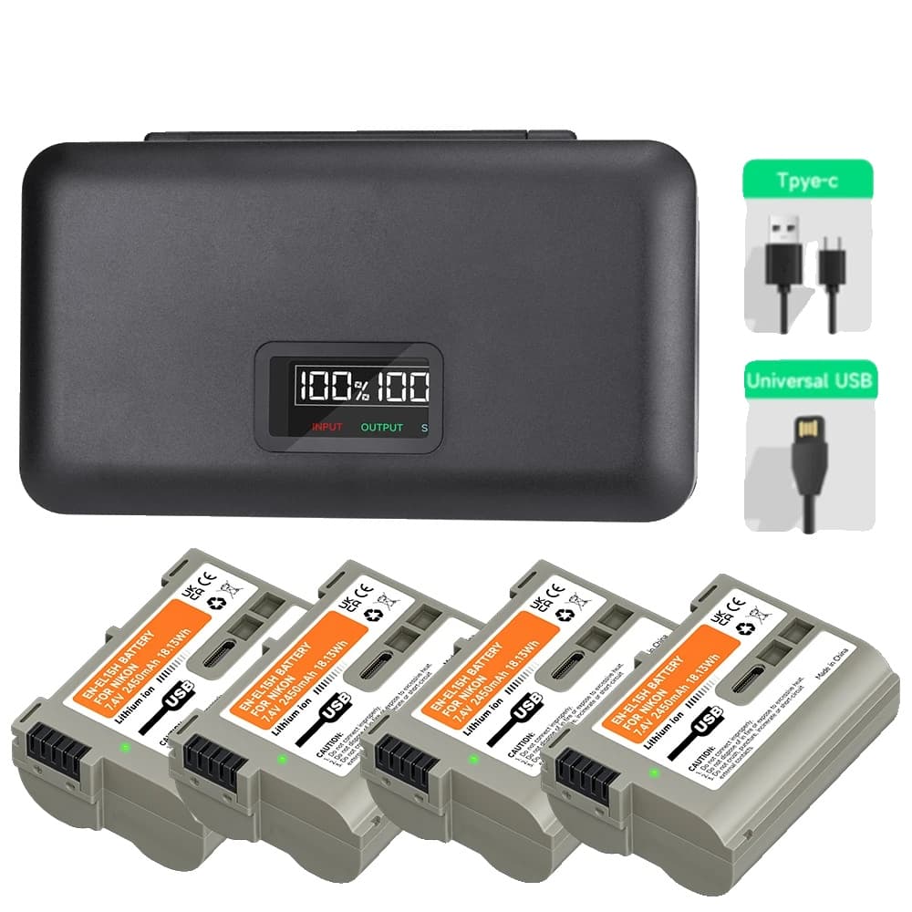 EN-EL15 USB-batteriladdare, uppladdningsbar, kompatibel med Nikon-kameror,4Batteri 1Laddare