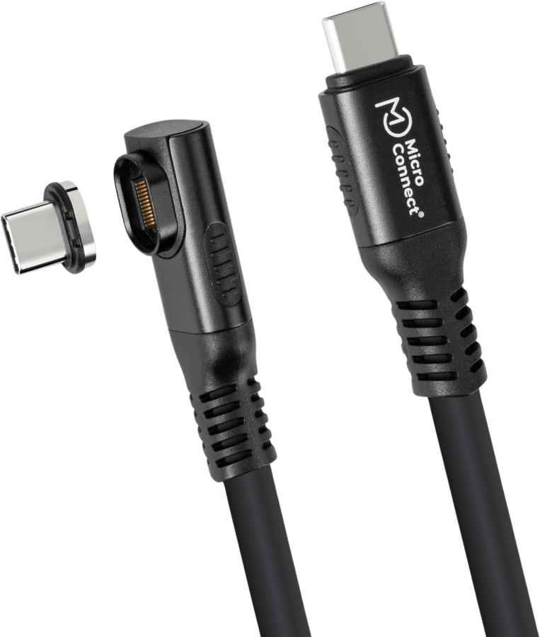 MicroConnect Vinklad USB4 vätskesilikonkabel med magnet, 40Gbps, 240W, 8K, 1m, svart