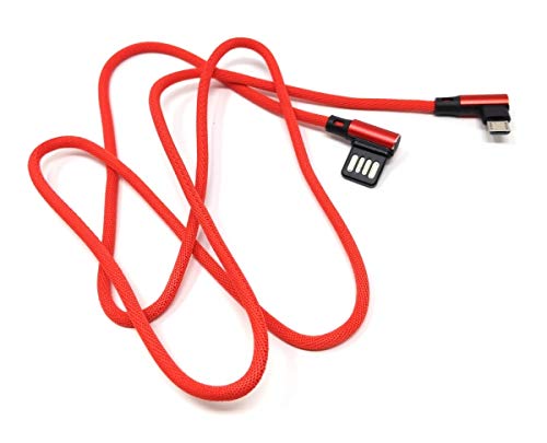 System-S Micro USB-kabel vänster vinklad på vändbart USB-gränssnitt typ A 2.0 röd 98 cm