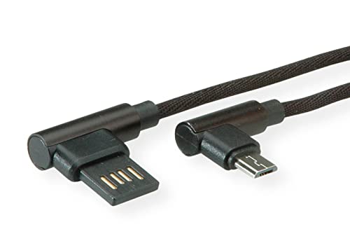 ROLINE 11.02.8720 USB 2.0 kabel, typ A vändbar – Micro B (vinklad), ST/ST, 0,8 m svart