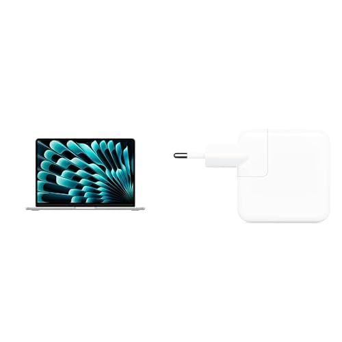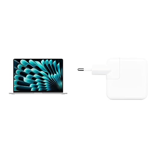 Apple MacBook Air 15,3-tum med M5-chip: Liquid Retina-skärm, 24GB enhetligt minne, 1TB SSD, 12 MP Center Stage-kamera, Touch ID, wifi 7, silver; med Apple 30 W usb-c-strömadapter