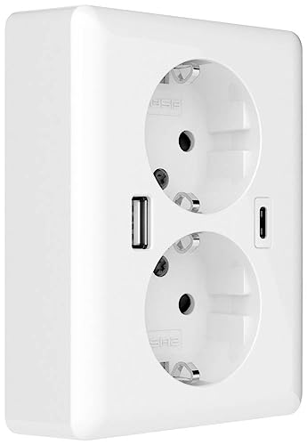 2USB easyCharge Duo USB AC dubbel socket outlet 18,0 W/3,6 A glansig vit (RAL9010)