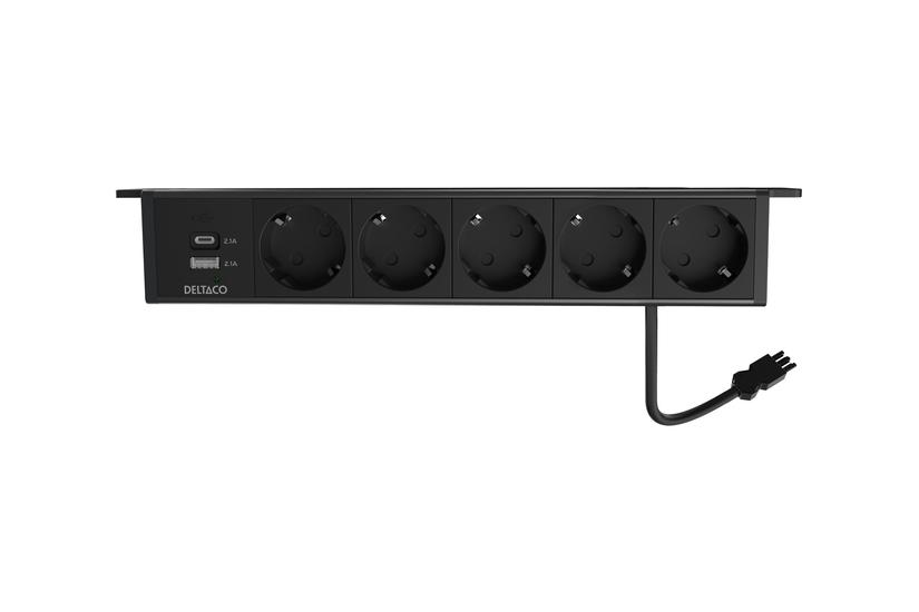 DELTACO OFFICE - effektband - 1x21W A+C USB charger, GST18 cable connector, outlet angled, under-desk