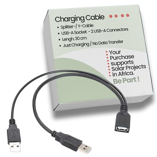 Villageboom USB Y splitter 1 till 2 – varje köp finansierar afrikanska. Solprojekt – dubbel USB-kabel, 1 uttag 2 kontakt – speciellt för laddning, inte för dataöverföring